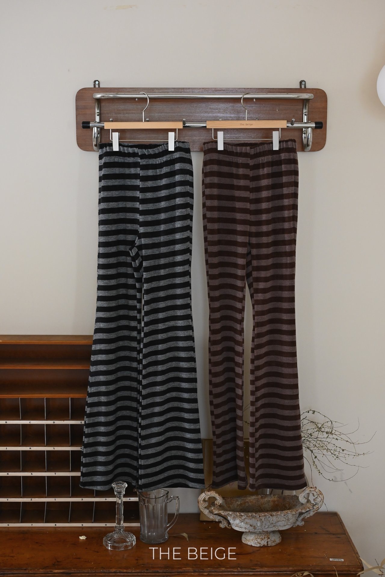 "送料無料" (予約) Stripe bell pants(adult) / the beige