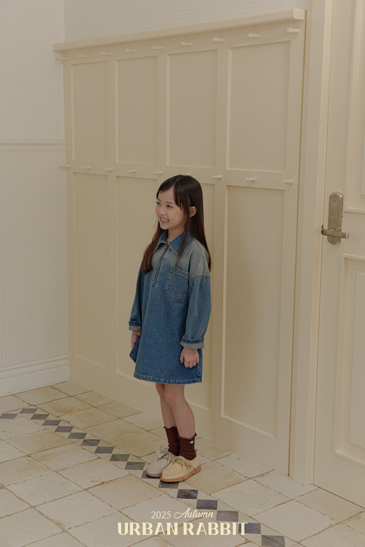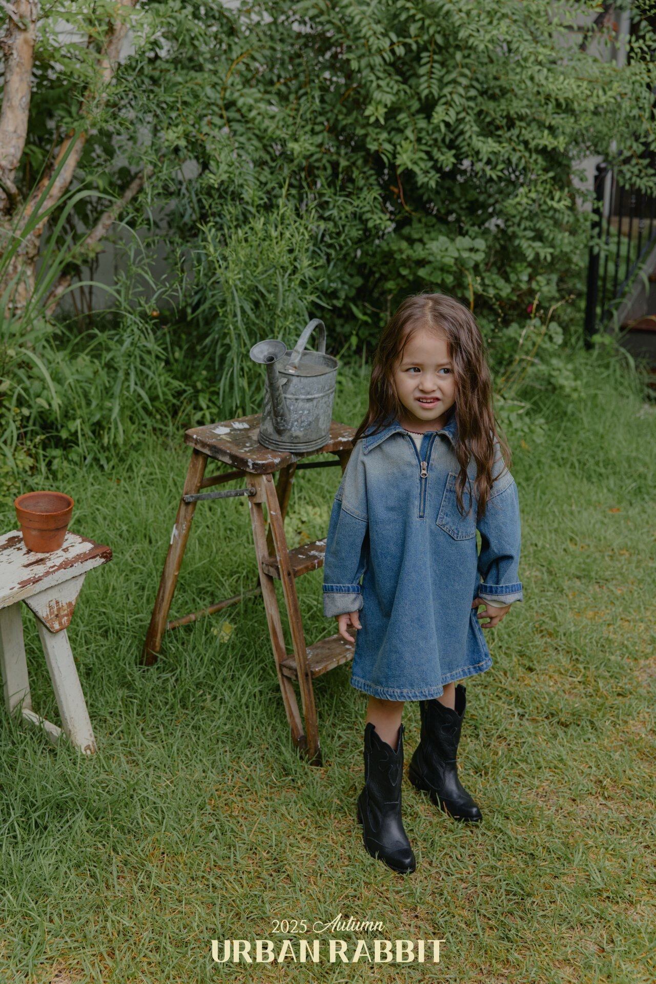 "送料無料"(予約) Brushed denim onepiece / URBAN RABBIT