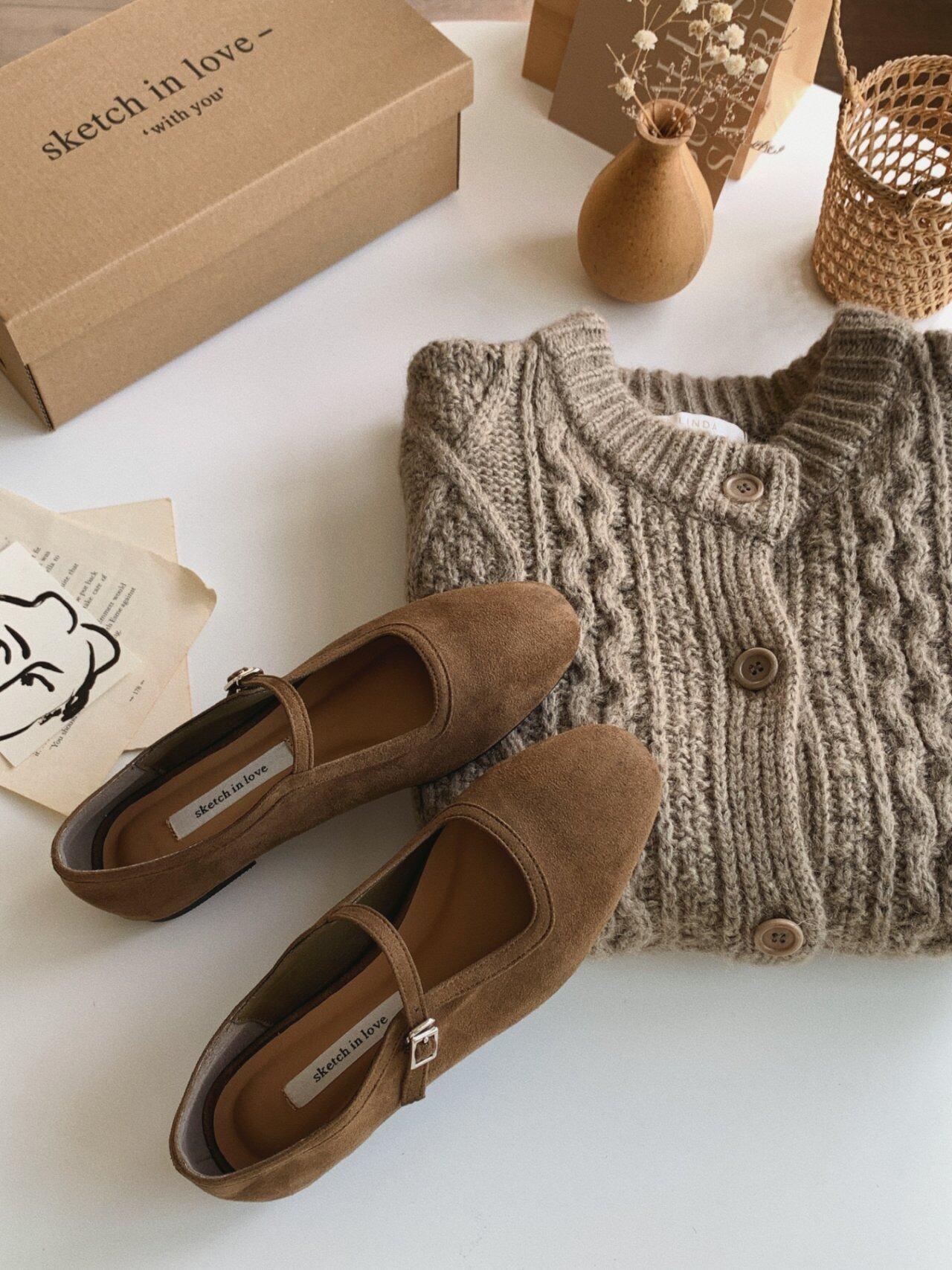 (予約) No.1030 ladies Olive suède flat shoes/ sketch shoes