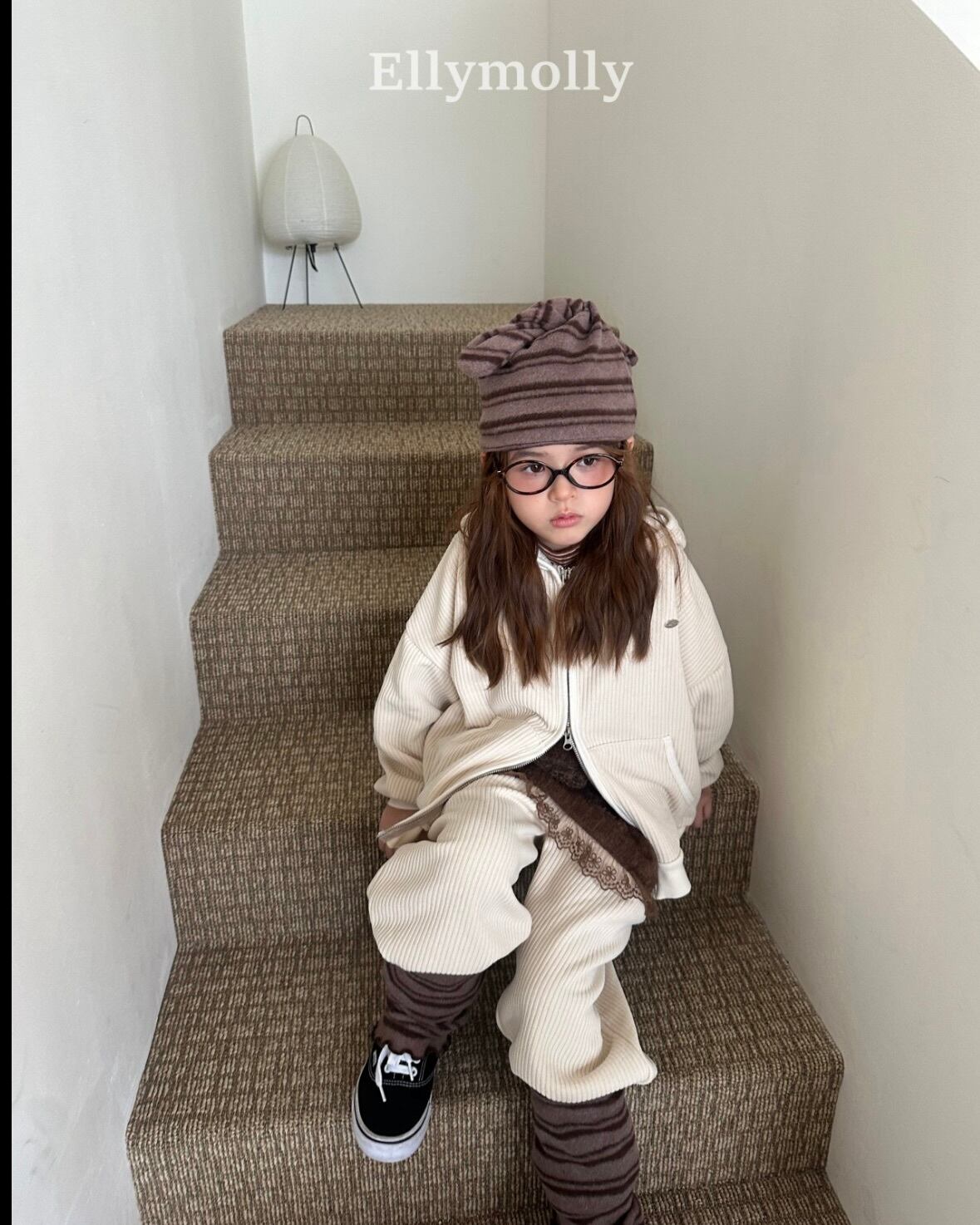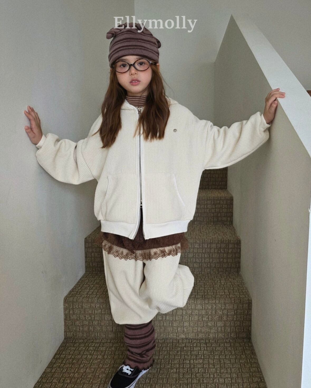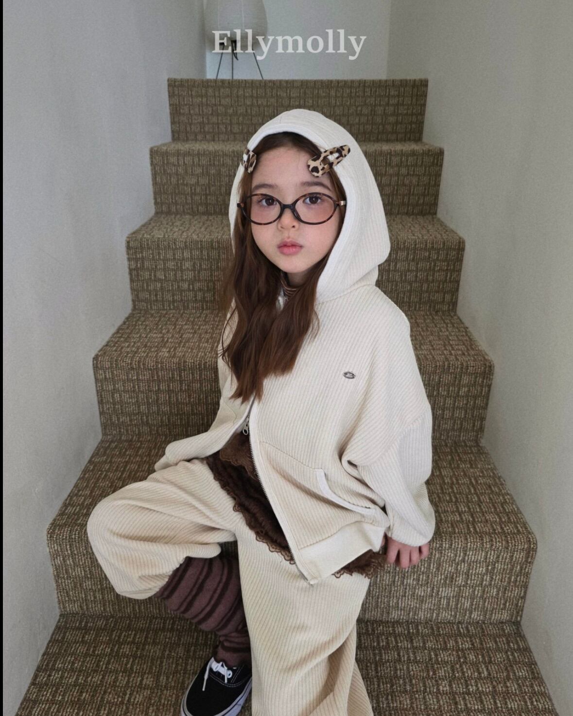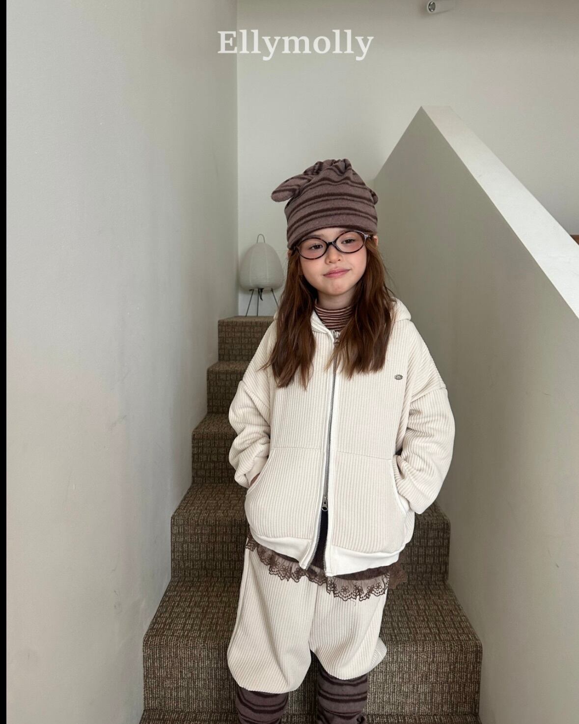 "送料無料" (予約) Corduroy rib hooded zip-up / elly molly