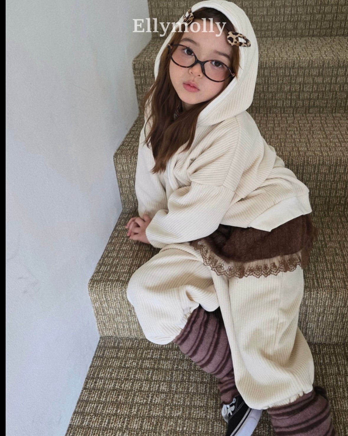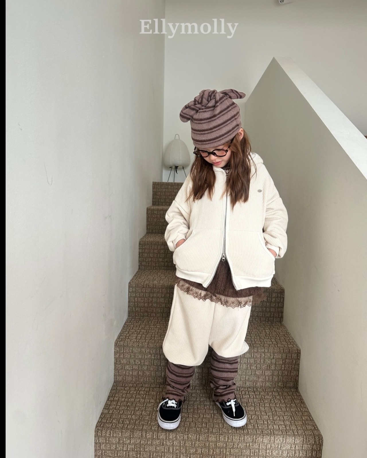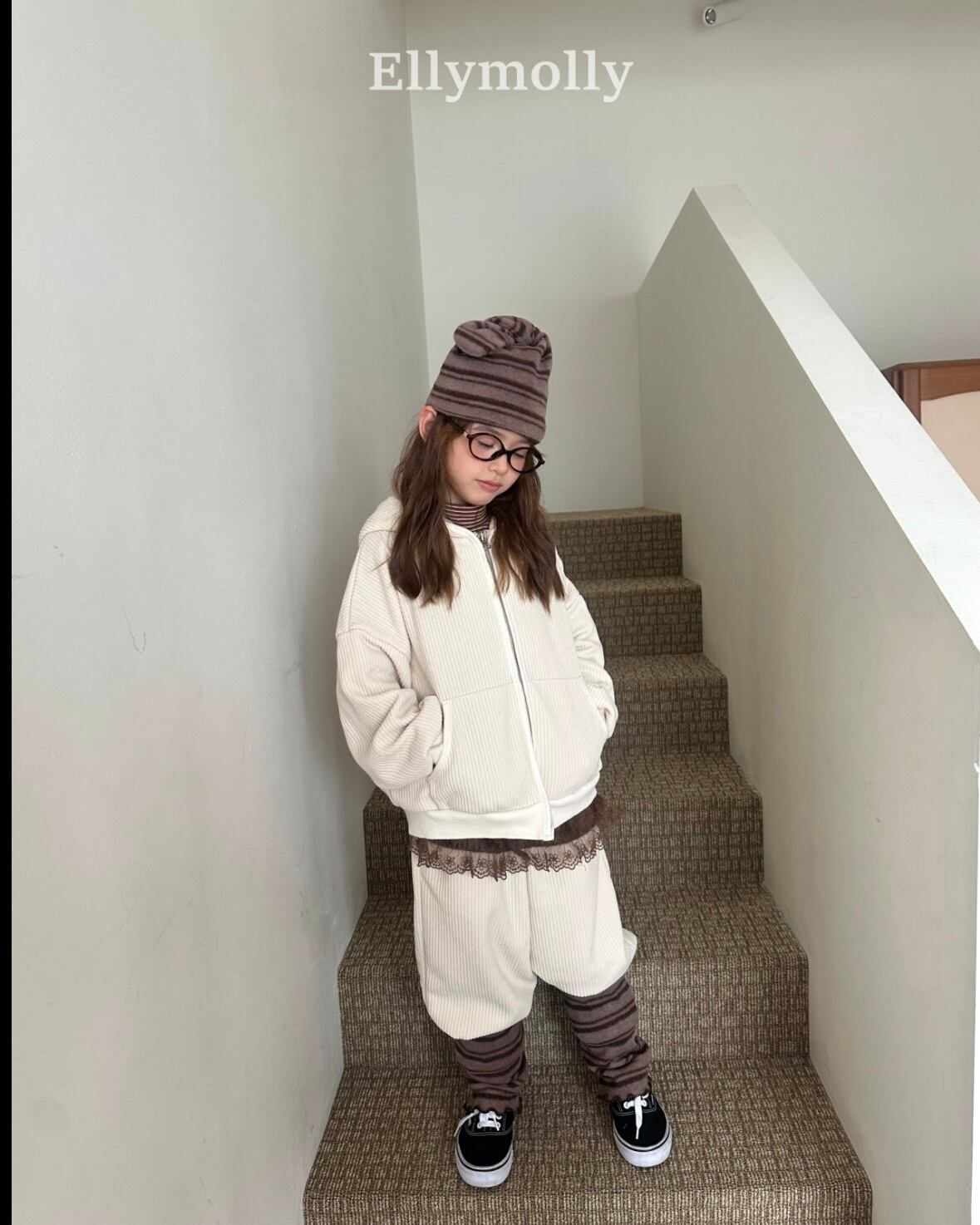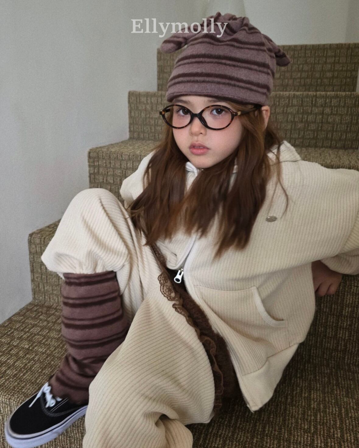 "送料無料" (予約) Corduroy rib hooded zip-up / elly molly